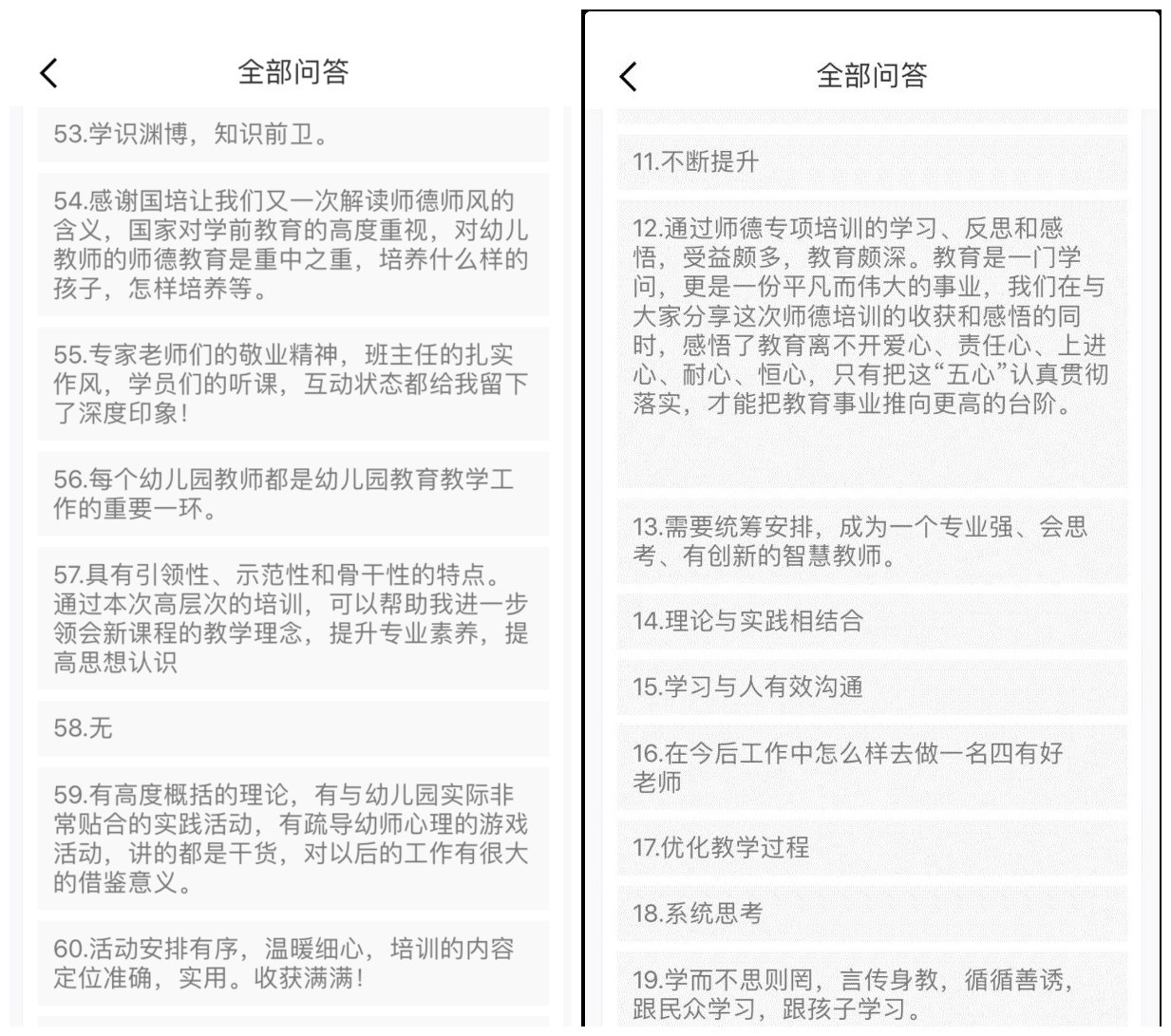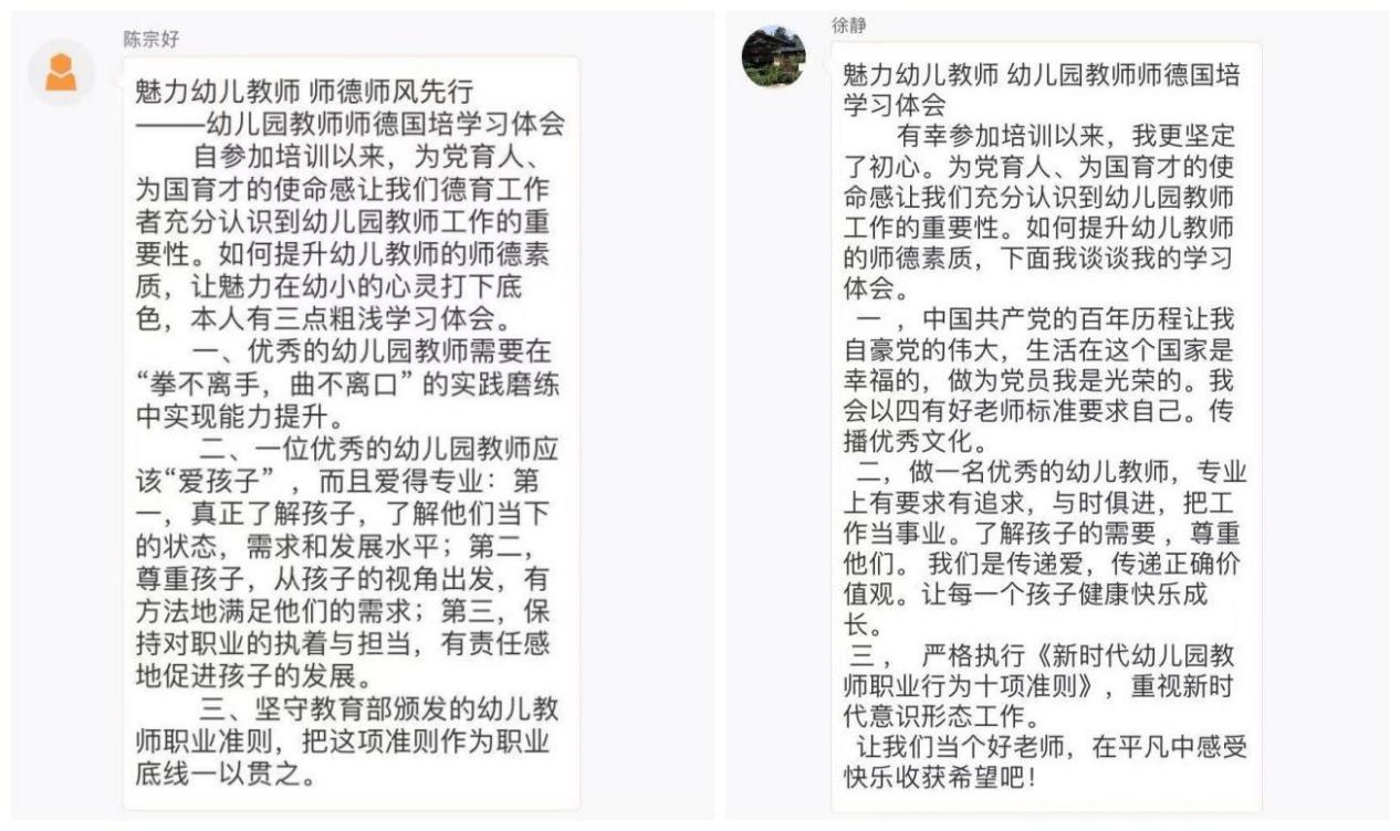 师德为先,身正为范。从专业标准解读到习近平新时代关于教育的论述,从强化师德师风教育到教师职业行为十项准则,从感佩师德力量,播撒幸福阳光到让优秀成为一种习惯,专家们一场场精彩讲座让我们再次感受到崇高师德的重要,坚定脚踏实地践行立德树人的幼师信念。