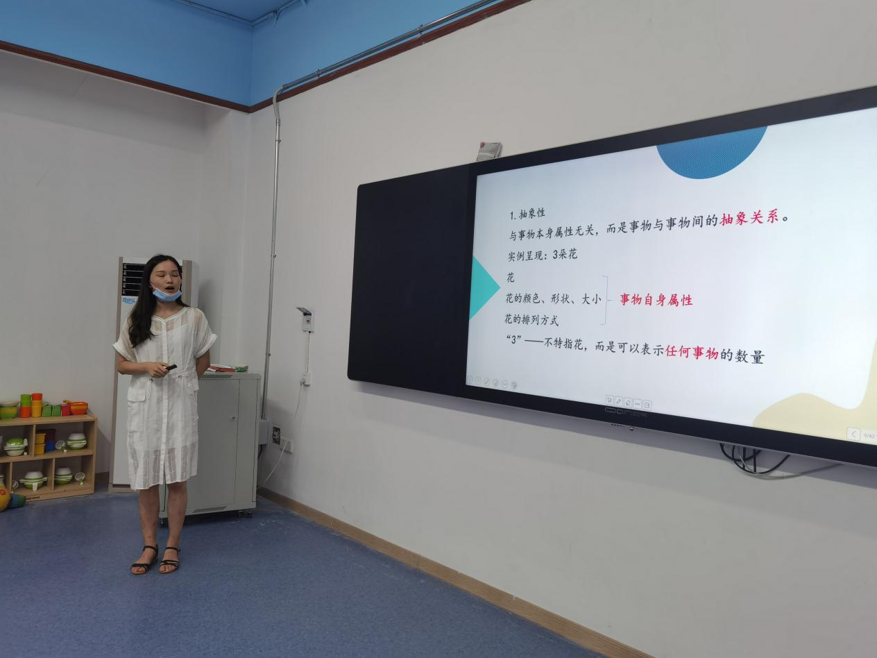 在无学生授课环节,新进教师以第一章“幼儿园数学教育概论”为主题进行了无学生模拟授课。徐春雪老师对于知识的讲解简洁明晰,从整体上把握章节的知识关联,听完后很有获得感。孙藜源老师利用有趣的科学小视频、丰富的案例和互动将知识深入浅出地传递给学生,营造了轻松活泼的课堂氛围。两位教师具有的扎实科学知识和严密逻辑思维获得了各位教师很高的评价。