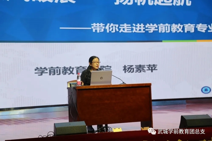 讲座上,杨素苹院长就学前教育专业的历史背景、学制类型、师资团队情况、未来的就业去向及考证要求等方面向同学们展开讲解。她强调,学前教育专业的就业前景是非常光明的,随着家长和社会的越发重视,学前老师的需求也大大增多,所以她认为,明确的目标、坚定的信心、积极的心态以及不断的努力是成功的重要条件。