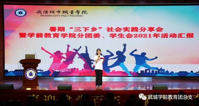 为全面总结我院暑期社会实践活动,将暑期社会实践活动的意义延伸到青年学生的学习生活中去。2021年9月13日下午两点,学前教育学院于北校区小礼堂举行了大学生暑期社会实践分享会暨学前教育学院分团委、学生会2021年活动汇报。本次活动由学前教育学院分团委副书记兼学生会轮值主席许乐主持,参加此次分享会的有:分团委副书记曾志远老师、各部门代表及部分21级学生代表。