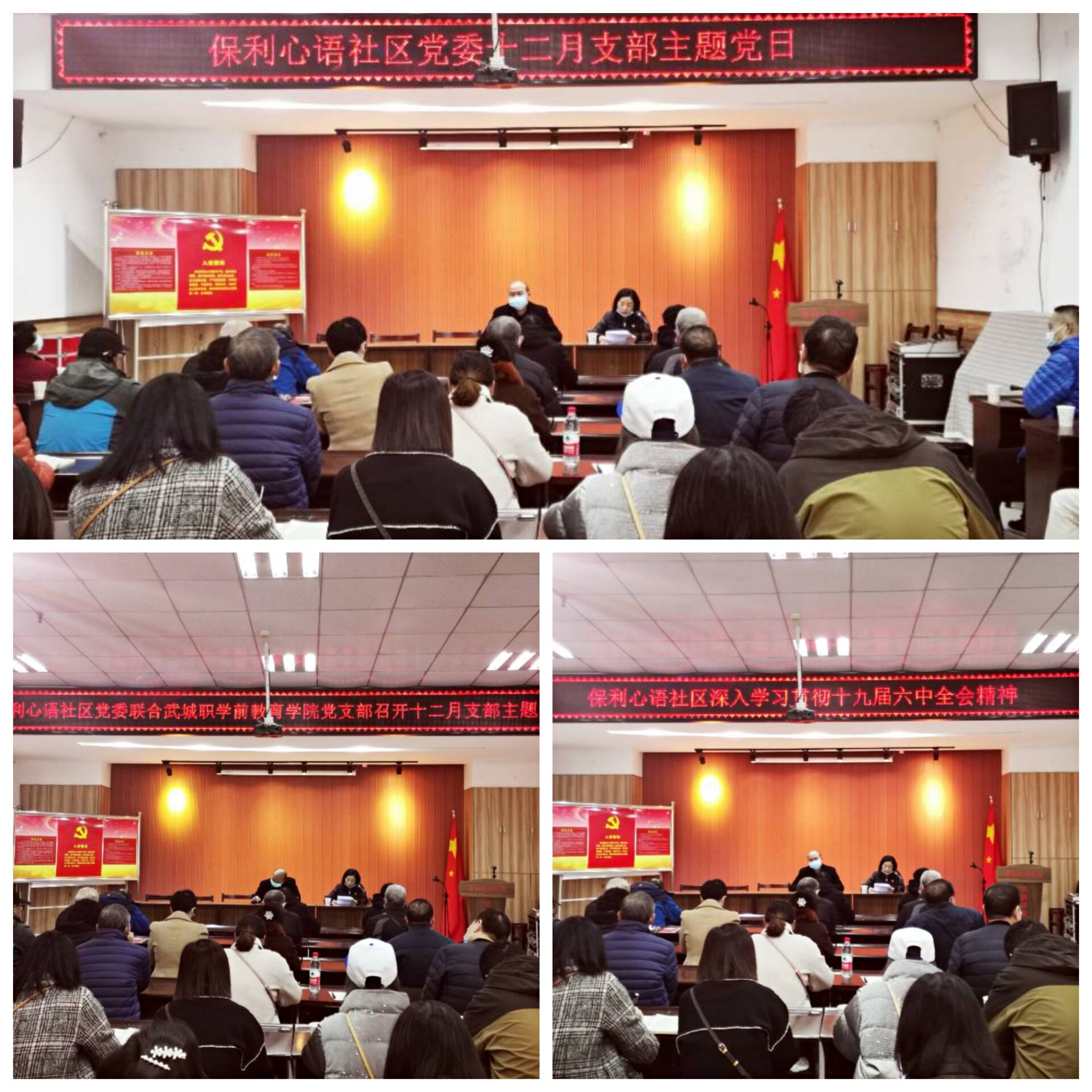 为深入学习贯彻习近平总书记十九届六中精神、近期重要讲话精神和中共中央关于做好党的二十大代表选举工作的通知精神,认真学习贯彻市委全面深化改革委员会第十次会议精神。根据中共武汉市委组织部文件精神要求和中共武汉城市职业学院组织部下发12月支部主题党日重点提示,12月9日上午9点30分,武城学前教育学院学工党支部联合保利心语社区三期党支部,在保利心语社区党员群众活动中心召开12月主题党日活动。
