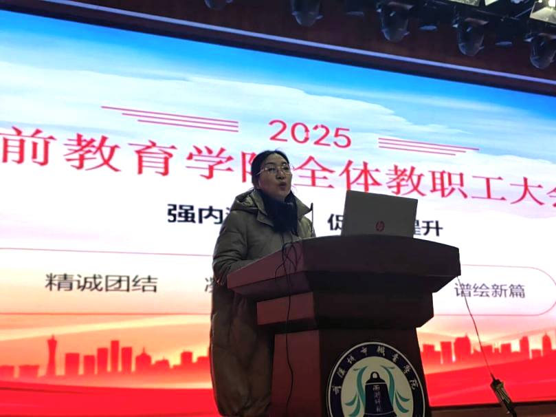 2月13日下午,为了明确新学期的工作目标,凝聚全体教职工的力量,学前教育学院隆重召开了2025年春季新学期全体教职工大会。本次大会以“强内涵建设,促质量提升”为主题,围绕“精诚团结、凝心聚力、奋楫笃行、谱绘新篇”的关键词展开,为新学期的各项工作奠定了坚实的基础。
