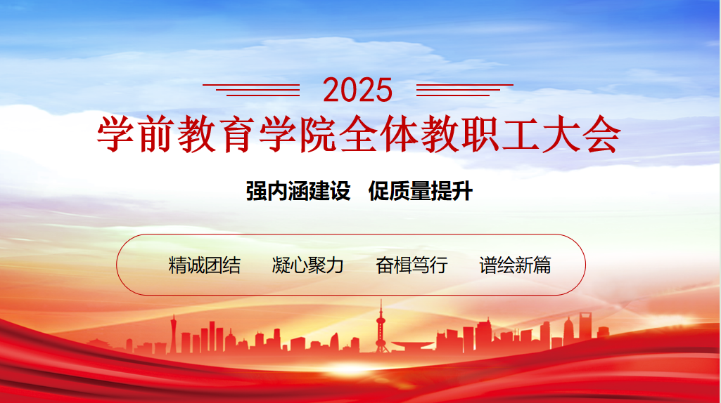 新的一年、新的学期,学前教育学院将紧跟学校提质培优、提能增效、提升队伍、提档升级的步伐,扬优势、补短板,不断从变革中挖掘新机遇,实现新突破。全体教职工将以此次大会为契机,坚守育人初心,满怀热忱希望,扛起学校高质量发展的使命和责任,奋楫扬帆,凝心聚力,共同推动学校高质量发展,努力办好人民满意的教育!
