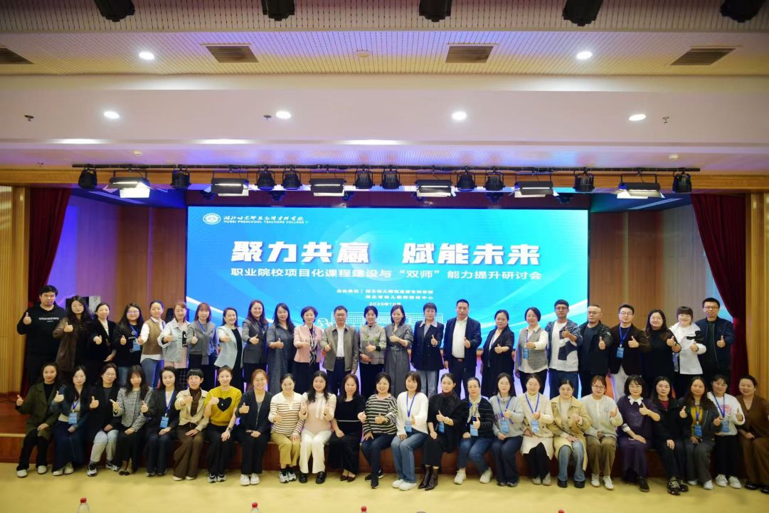 近日,由湖北幼儿师范高等专科学校与湖北省幼儿教师培训中心联合主办的"聚力共赢 赋能未来——职业院校项目化课程建设与'双师'能力提升"研讨会在武汉顺利召开。来自全国33所院校的近百名职教专家与教师齐聚一堂,学前教育学院王俊、郑蒙两位老师应邀参会,与同行围绕项目化课程改革、赛教融合、双师型教师队伍建设等关键议题展开深入交流。