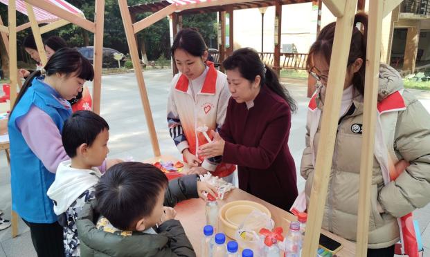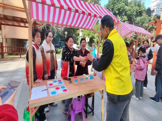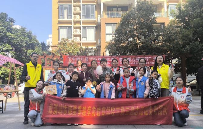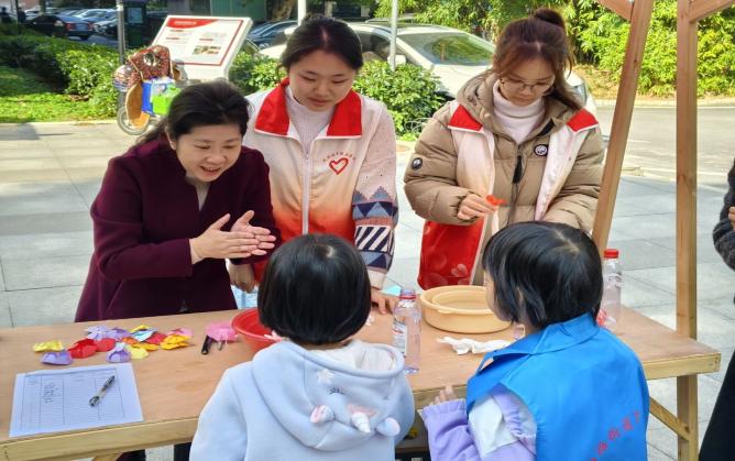 2025年11月22日周六上午,武汉城市职业学院“三融三通”志愿服务团队走进武昌丁字桥社区,开展了以“乐动童趣启智,科探奇思润心”为主题的志愿服务活动,采用了新颖的集市游戏培训方式,以音乐律动与科学实验融合融通,激发幼儿节奏感、探索欲,实现“听-思-动-说”系列感受体验,让幼儿在趣味游乐中感受科学奥秘与艺术魅力,助力幼儿全面发展,同时推动学生志愿者将科学思维、音乐技能与实践服务深度融合,提升社会实践能力。