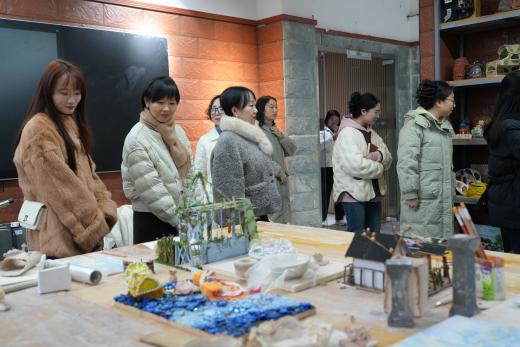 随后,一行人还参观了美术实训室、感觉统合训练实训室、非遗文化传承实训室以及陶艺实训室。丰富的学生作品与专业的训练设备,彰显了我院人才培养的文化底蕴与特色。