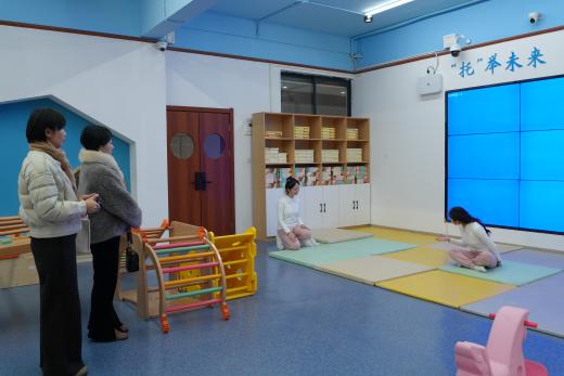 交流结束后,双方在学院会议室进行了深度研讨和交流。吴培园长高度认可我院“以学生发展为本、以行业需求为导向”的课程设置理念,认为课程体系紧密对接托育行业发展趋势,构建了“学校—机构—家庭”协同育人的闭环。黄丽华园长展望了校企双方未来在实习就业、师资交流、职业培训等方面的合作前景。杨素苹院长积极回应了双方的合作意向。她表示,双方可在实习基地共建、师资互聘互培、培训项目开发、课程资源合作及教研课题申报等多个方面协同推进,实现资源共享,共同助力托育行业高质量发展。