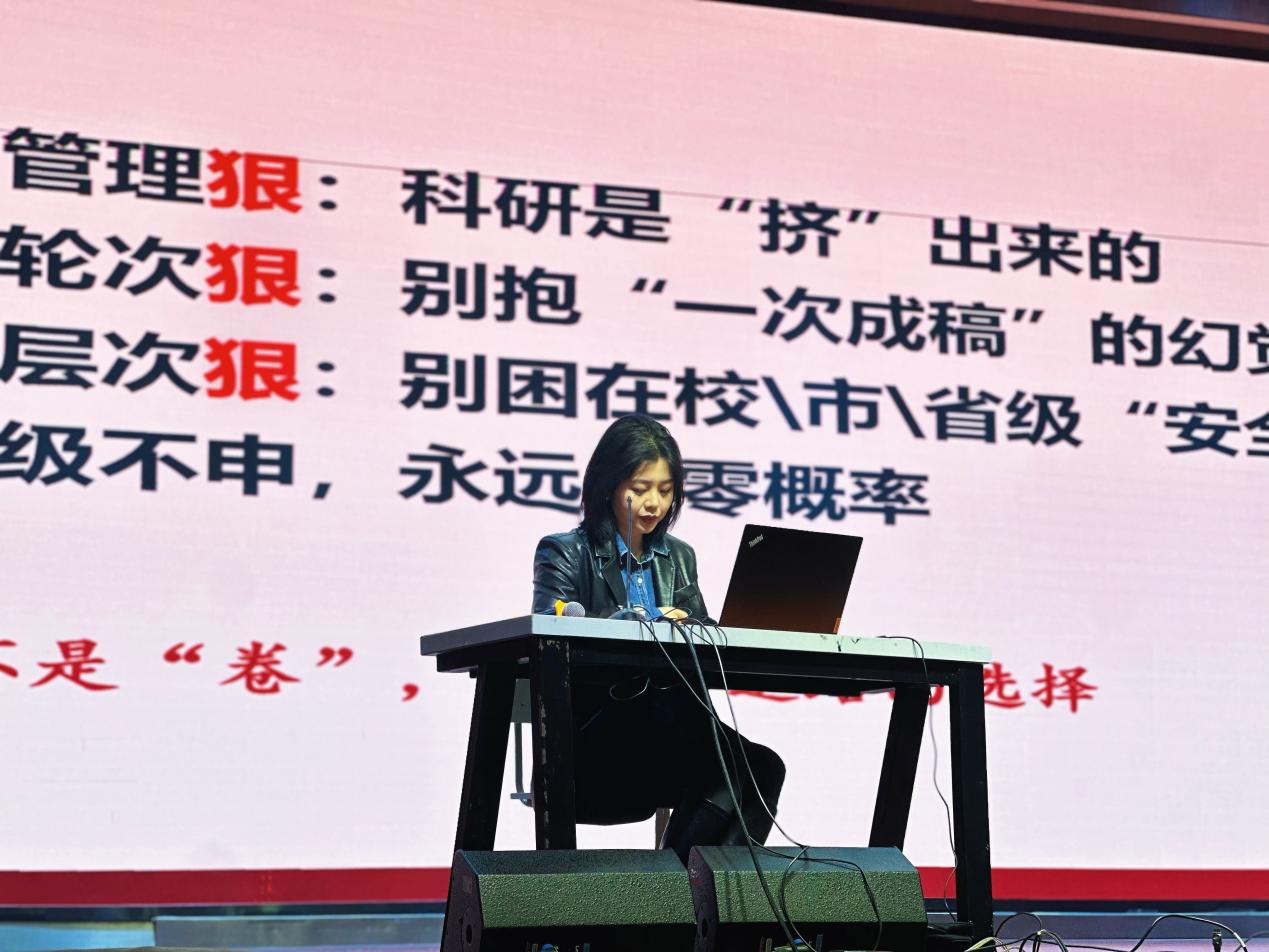 邬瑶瑶老师就学院科研工作进行分享交流。从“快、准、狠”三个方面鼓励老师们抓住前沿机遇,突破科研创新。