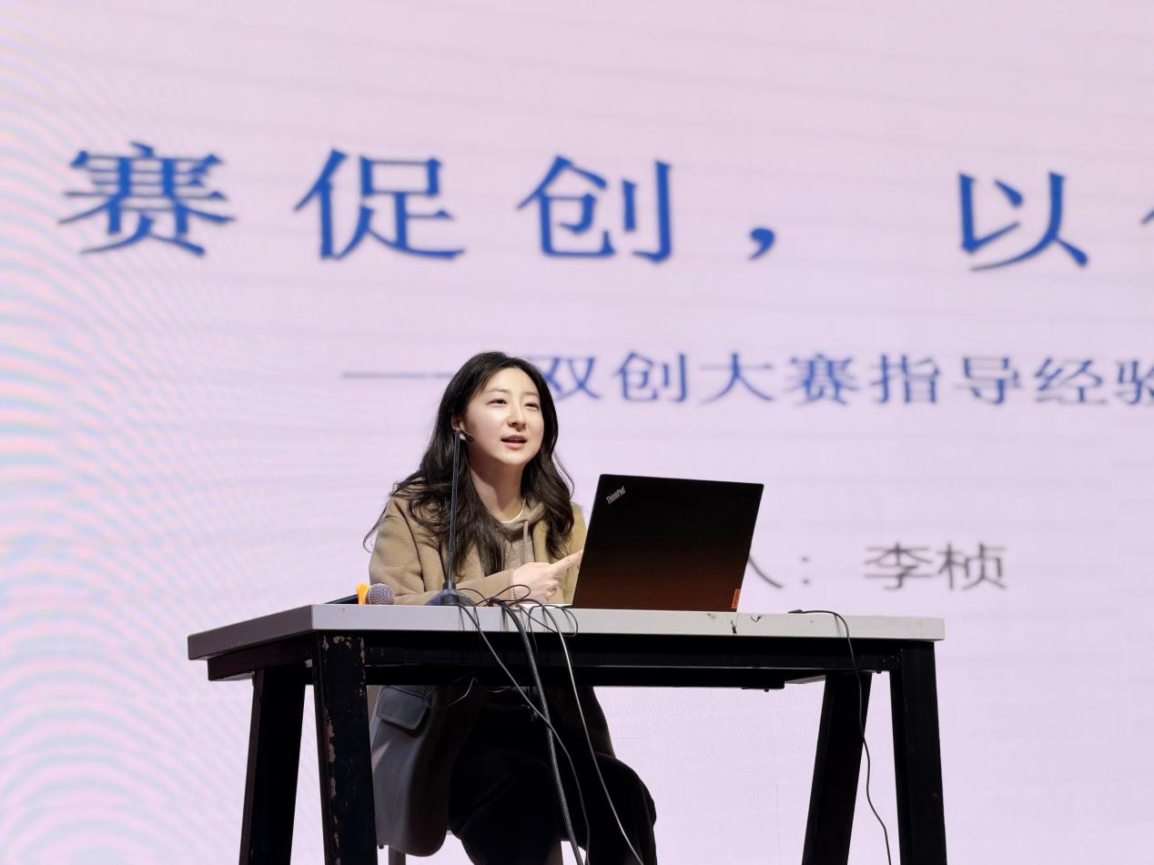 李桢老师就双创大赛指导经验进行分享。详细介绍了双创大赛的时间表、赛制等内容,鼓励老师们积极参与,以赛促教,以赛促学。