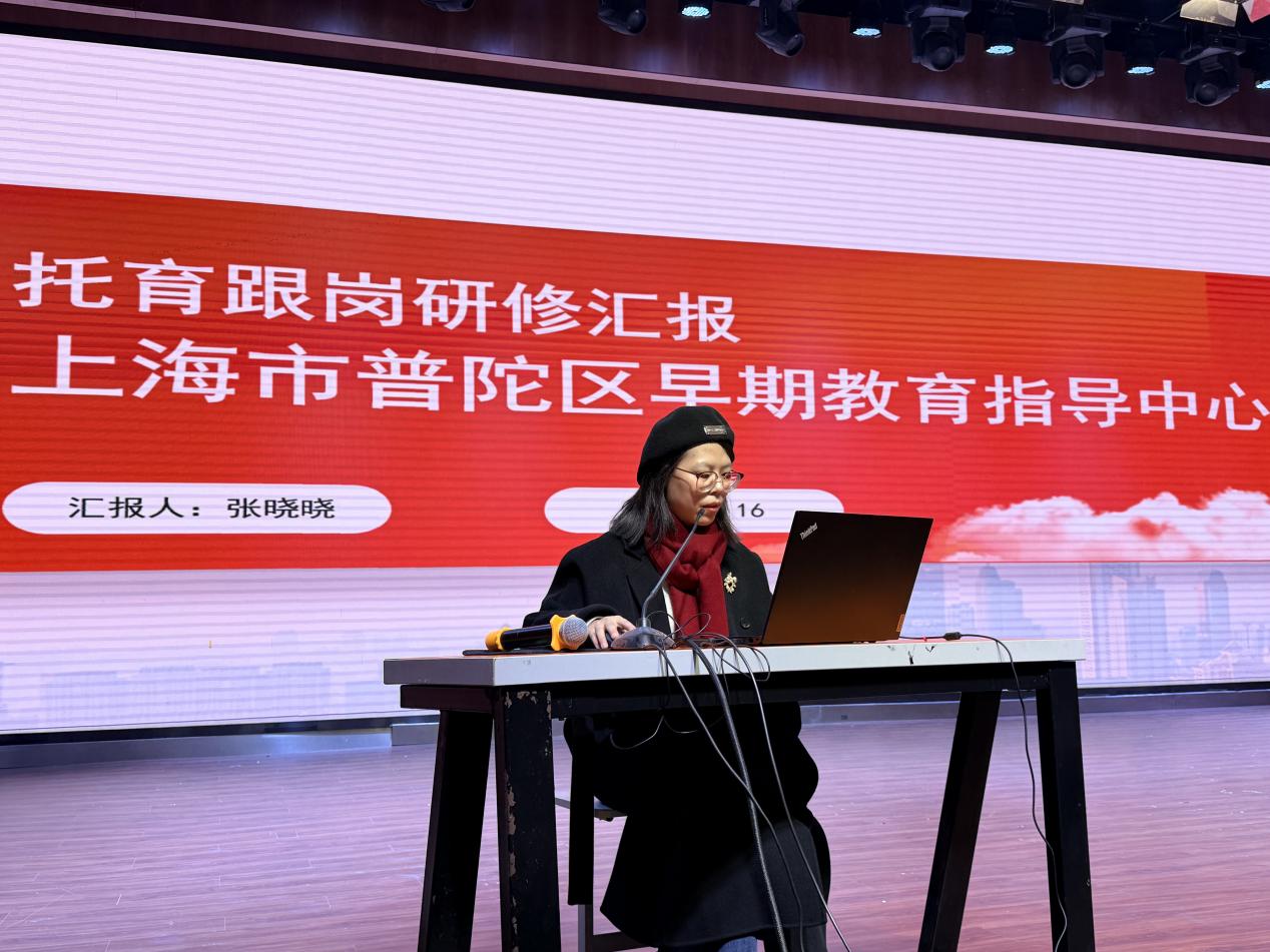张晓晓老师就上海早期教育指导中心跟岗研修项目进行汇报。向老师们展示了托育服务领域的先进案例。