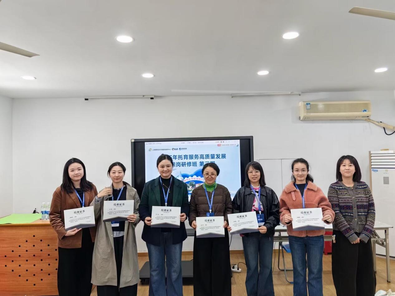 在联合教研与教师案例交流环节,《斜坡,小球和汽车》《互动从解读开始》等十余则一线实践案例的分享,让学员们近距离学习了托育教学与班级管理中的创新思路,以及数字化转型下托育服务 “在场温度” 的重塑路径。研修尾声,参训教师顺利参与结业仪式,收获了由上海普陀区托育服务指导中心颁发的跟岗结业证书。